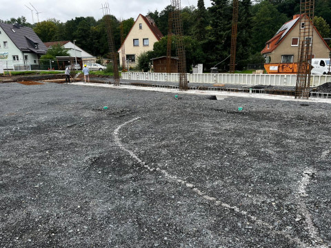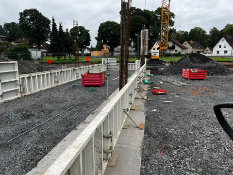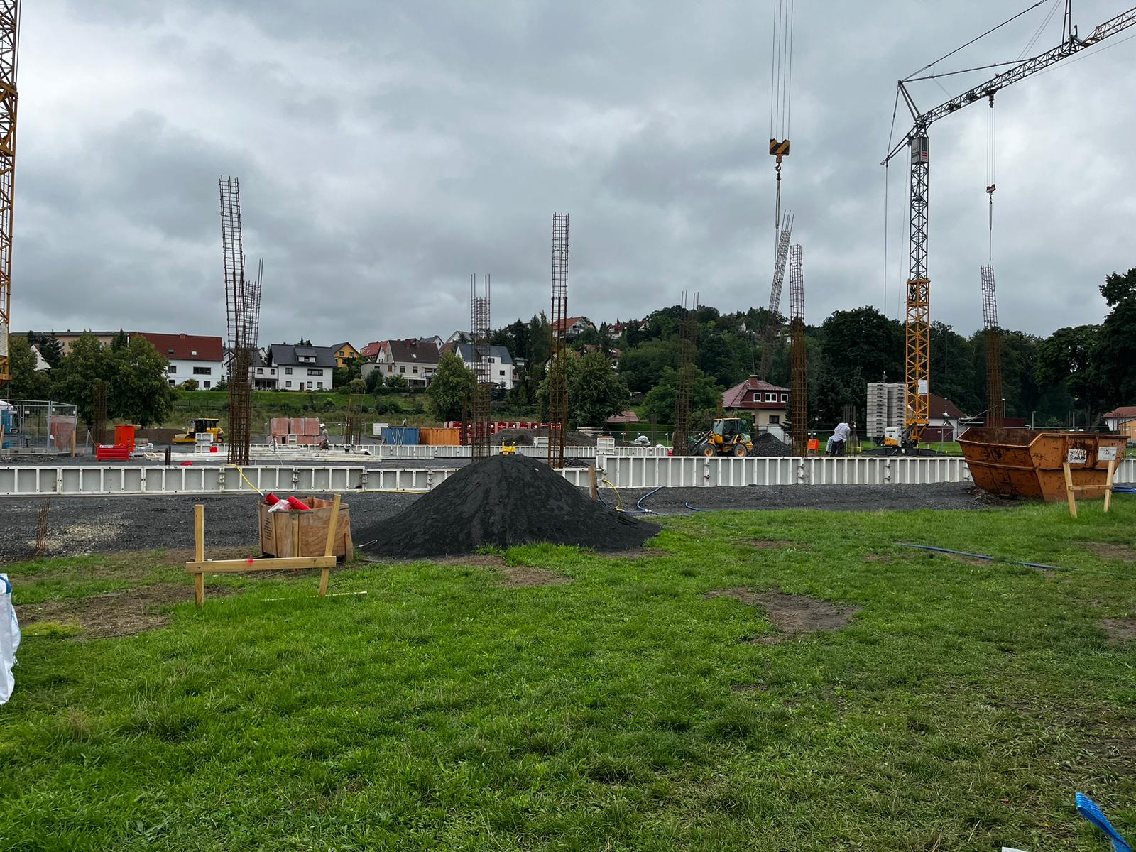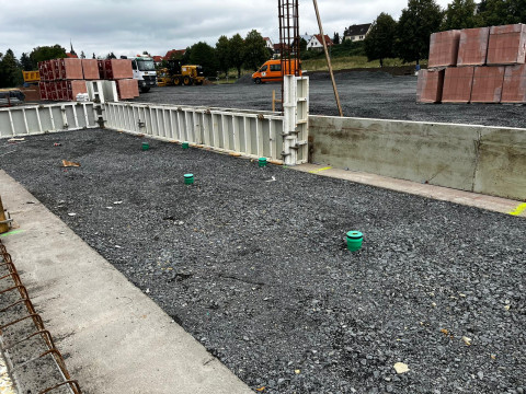 Bei unserem Standort in Vacha geht es fleißig weiter. Die Fundamente wurden hergestellt und auch die Vorbereitungen zum herstellen der Bodenplatte laufen. Ebenso die Grundleitungen sind eingebaut und die Bewehrung für die Stahlbetonstützen vorbereitet. Weitere Eindrücke und Informationen erhalten Sie nächste Woche wieder.