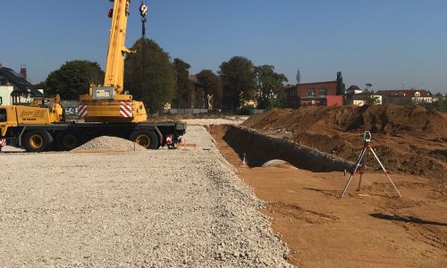 Zur Erreichung einer Nachhaltigkeitszertifizierung haben wir in das REWE Green Building (DGNB Zertifizierung) eine Wärmepumpe und umweltverträgliche, recyclebare Baumaterialien integriert. Zudem wurde eine ROSSMANN Drogerie zeitgleich mit dem REWE Markt eröffnet. Ein weiterer Fachmarkt wurde im Jahr 2021 fertig gestellt. Die drei Märkte teilen sich einen Stellplatzanlage mit insgesamt 160 Stellplätzen. Unsere Initiative zur Entwicklung des Grundstückes hat eine Aufwertung des Standortes bewirkt.