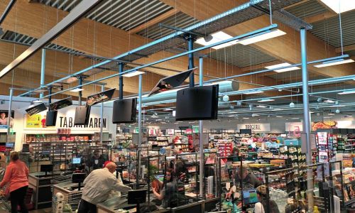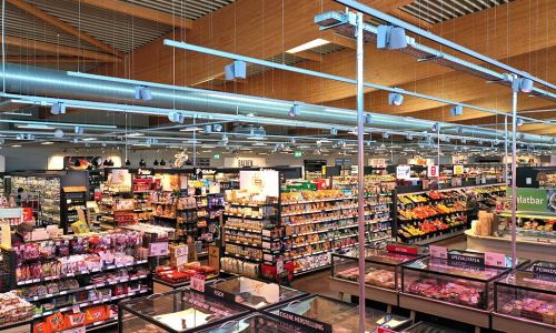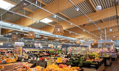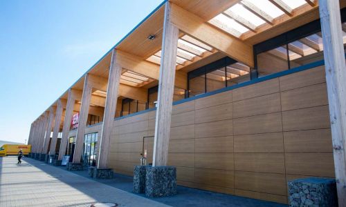 Dieser REWE Markt wurde sogar mit dem Gold Zertifikat der DGNB (Deutsche Gesellschaft für Nachhaltiges Bauen e. V.) ausgezeichnet. Im Rahmen der Nachhaltigkeitszertifizierung haben wir in das REWE Green Building eine Wärmepumpe integriert, welche Umweltwärme zur Beheizung des Marktes nutzt. Die Holzbinder, welche besonders im vorderen Außenbereich zur Geltung kommen, sind nicht nur eine architektonische Raffinesse, sondern stehen auch für den Einsatz umweltverträglicher und recycelbarer Baumaterialien. Mit diesem Neubau haben wir somit nicht lediglich Standards erfüllt, sondern uns darüber hinaus für eine ökologische und soziale Entwicklung des Standortes eingesetzt.